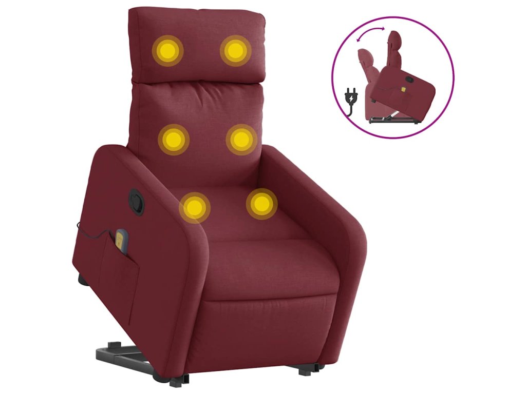 Zvedací masážní polohovací křeslo vínové textil 3206711