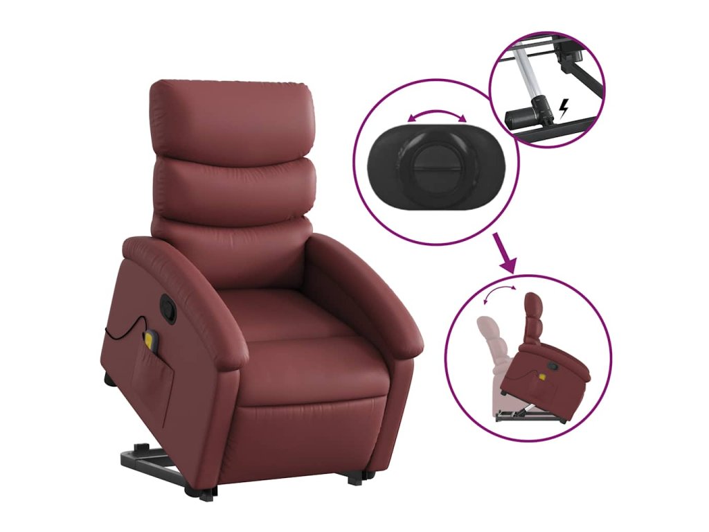 Zvedací masážní polohovací křeslo vínové umělá kůže 3204051