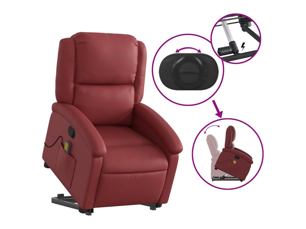 Zvedací masážní polohovací křeslo vínové umělá kůže 3204237