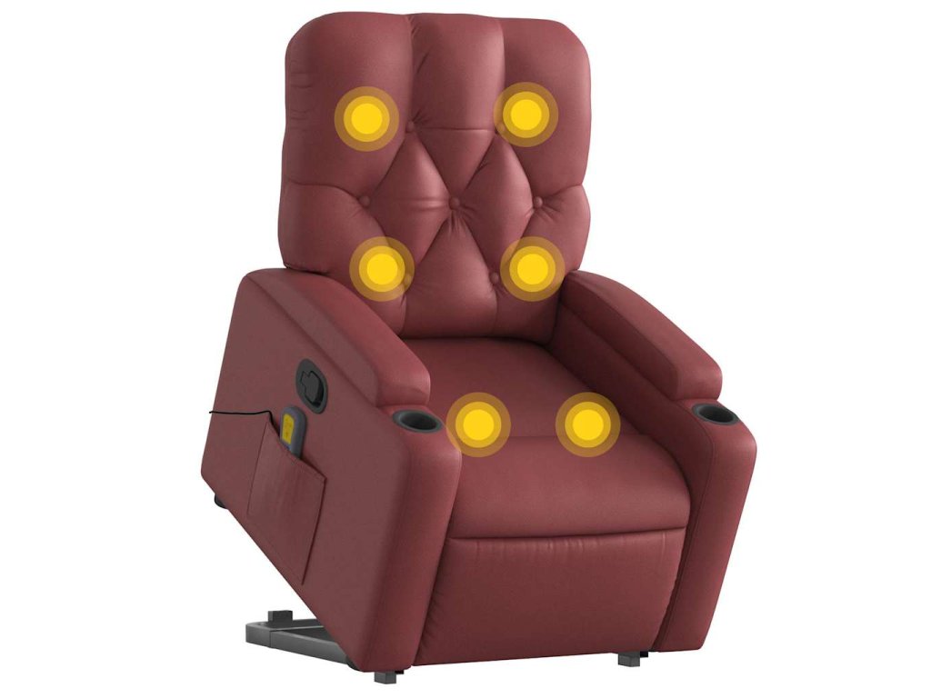 Zvedací masážní polohovací křeslo vínové umělá kůže 3204783