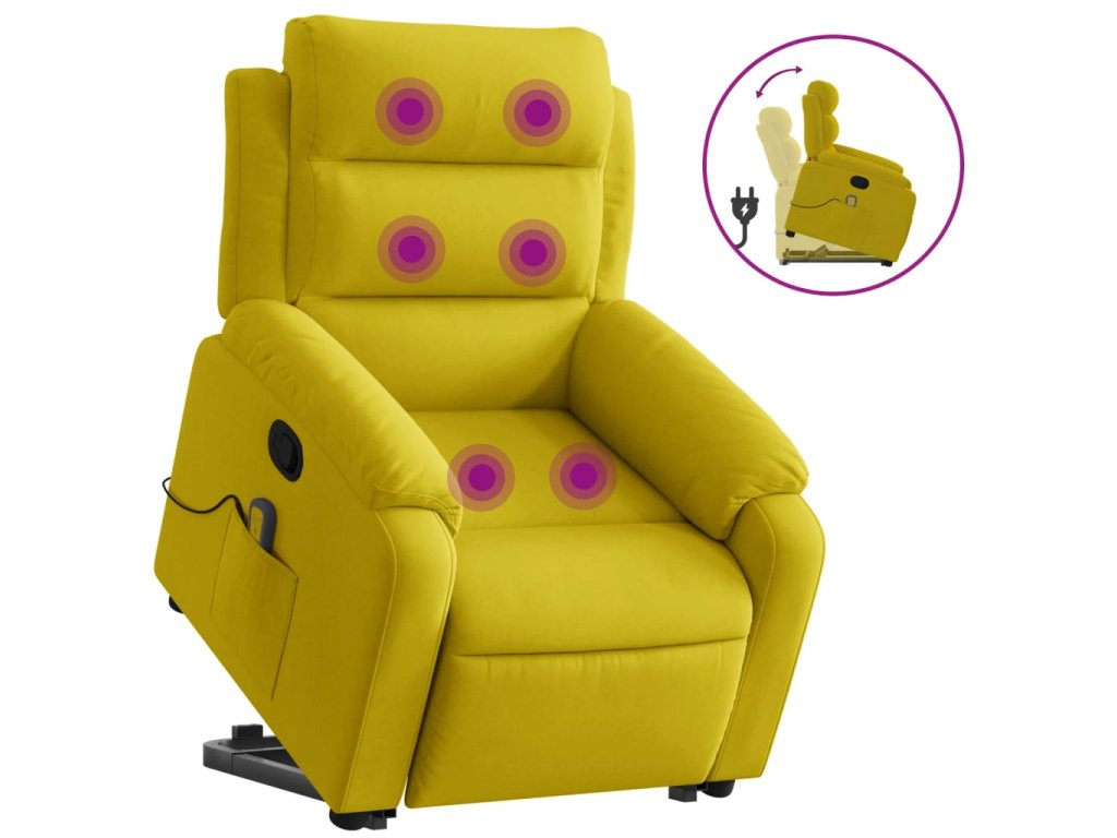 Zvedací masážní polohovací křeslo žluté samet 3205110