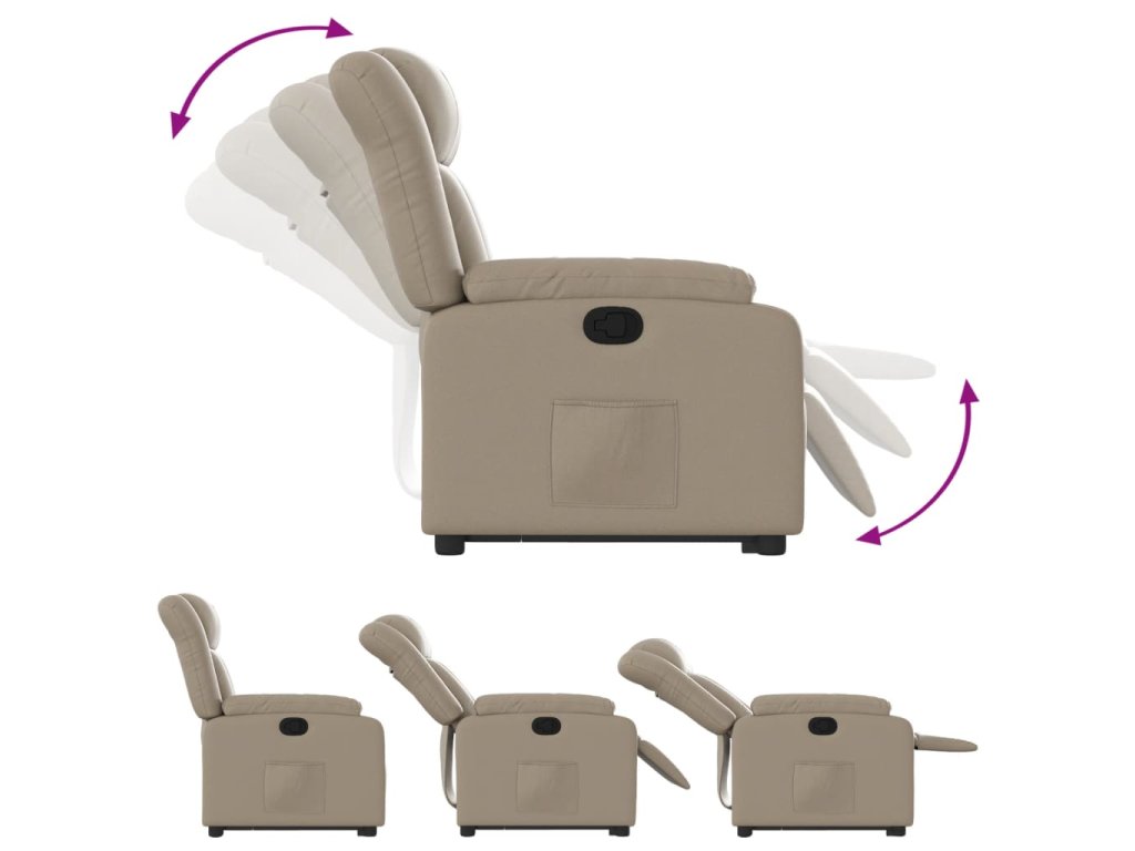 - Funkce ručního sklápění: Toto polohovací křeslo má na pravé straně páčku. Jednoduchým zatažením za páčku můžete ručně nastavit opěrku nohou a opěradlo do libovolné polohy podle svého pohodlí. Tato funkce umožňuje maximální náklon 135 stupňů. Opěradlo se navíc může snadným zatažením za páčku rychle vrátit do původní polohy.