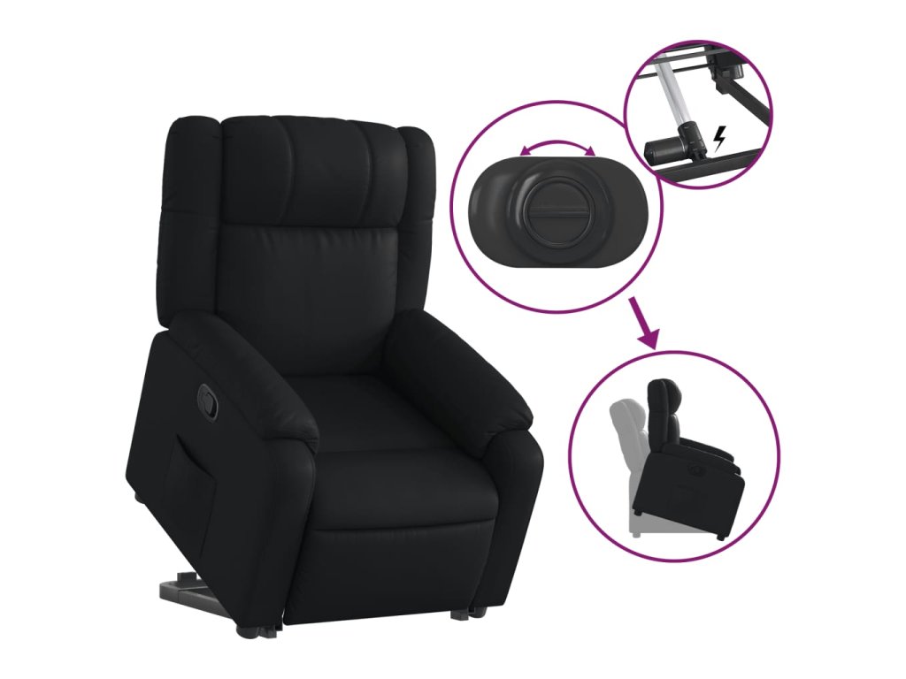 Zvedací polohovací křeslo černé umělá kůže 3205150