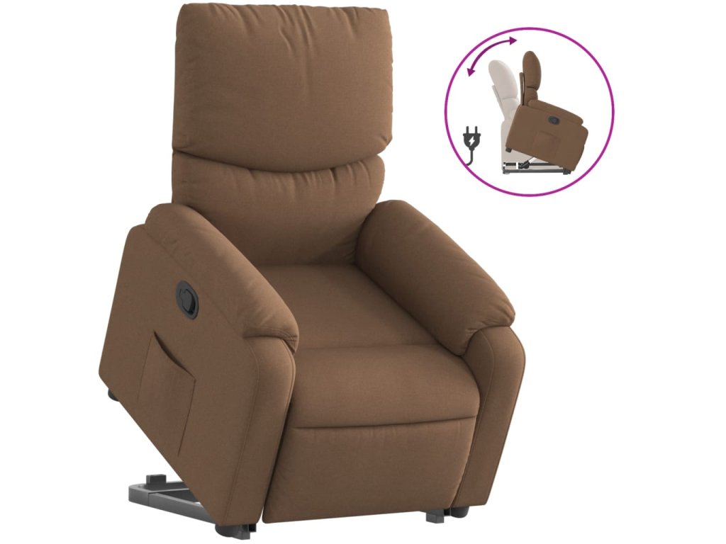 Zvedací polohovací křeslo hnědé textil 3204828