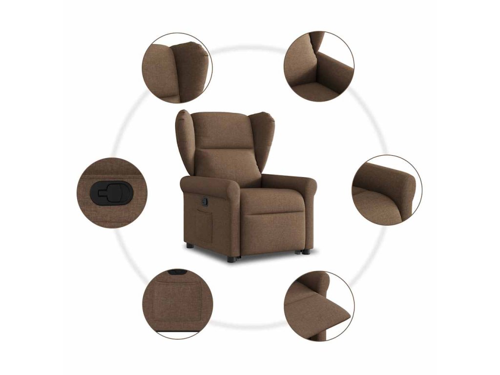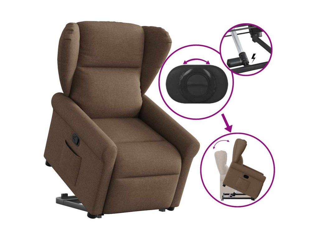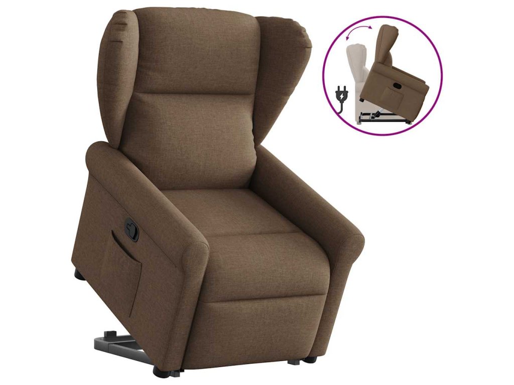 Zvedací polohovací křeslo hnědé textil 3303378