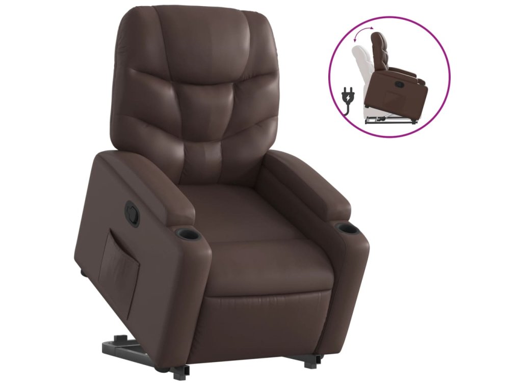 Zvedací polohovací křeslo hnědé umělá kůže 3204660