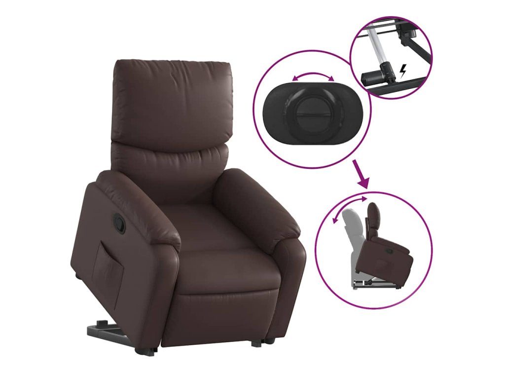Zvedací polohovací křeslo hnědé umělá kůže 3204888