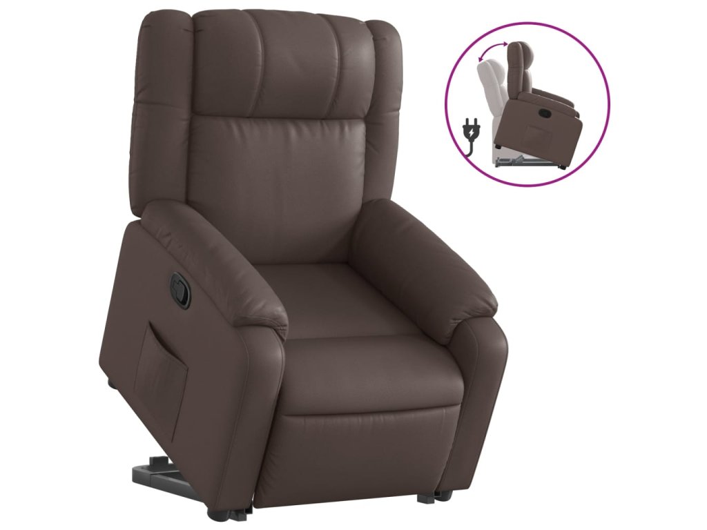 Zvedací polohovací křeslo hnědé umělá kůže 3205152