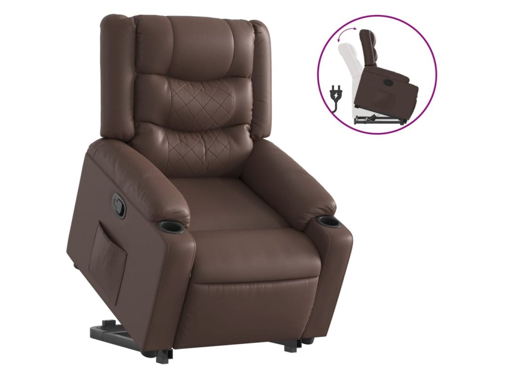 Zvedací polohovací křeslo hnědé umělá kůže 3206553