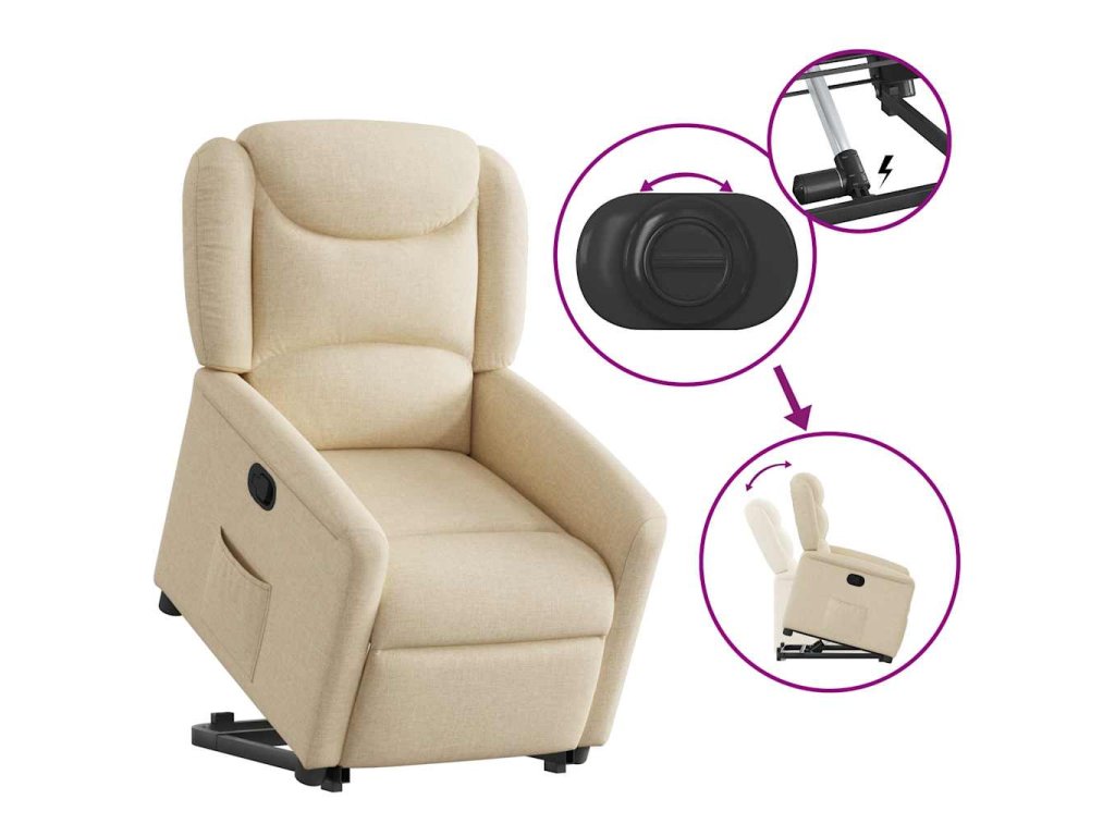 Zvedací polohovací křeslo krémové textil 3303202