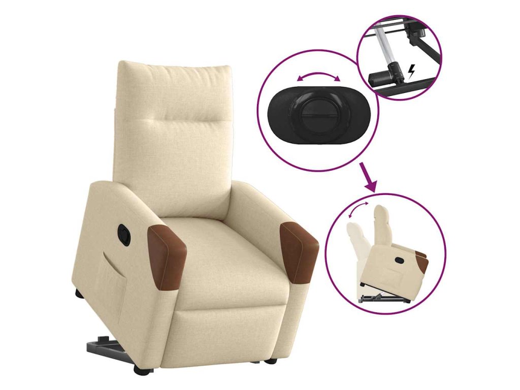 Zvedací polohovací křeslo krémové textil 3324010