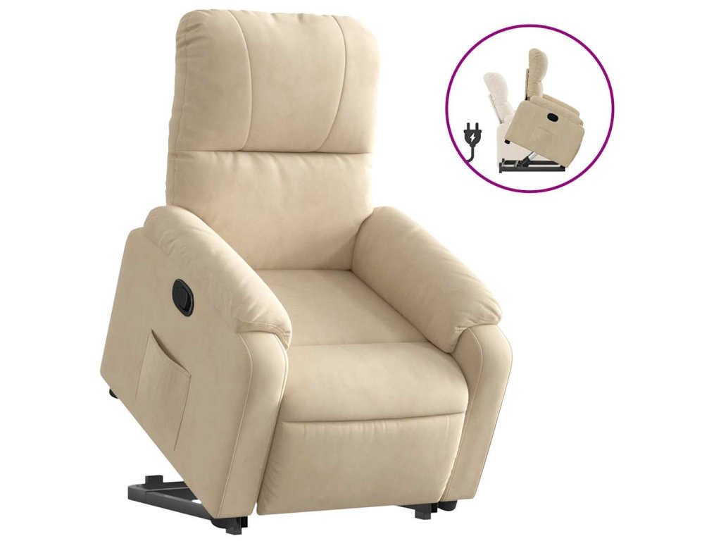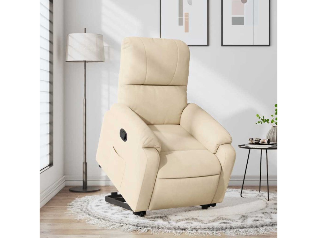 Zvedací polohovací křeslo krémové tkanina z mikrovlákna 3204933