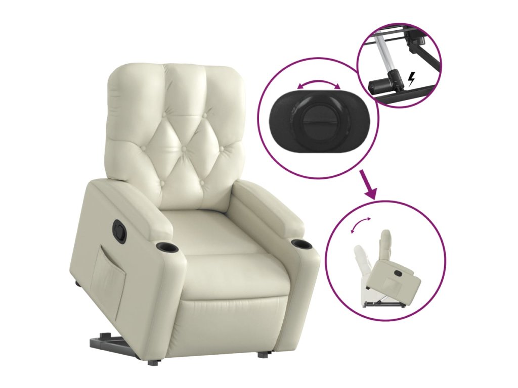 Zvedací polohovací křeslo krémové umělá kůže 3204773