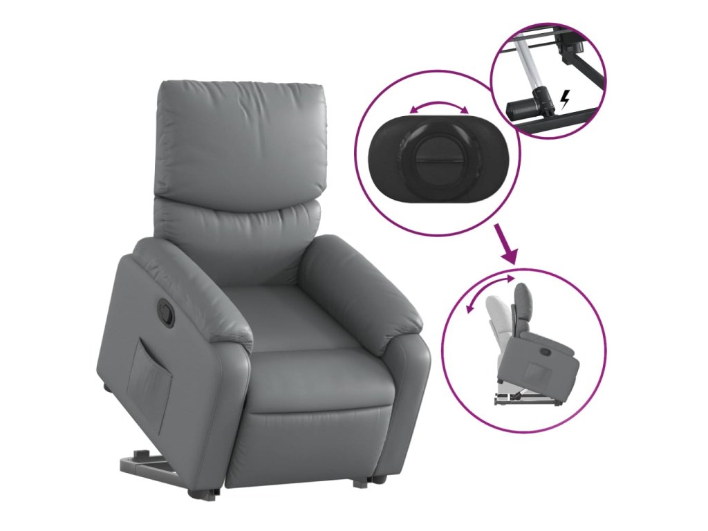 Zvedací polohovací křeslo šedé umělá kůže 3204889
