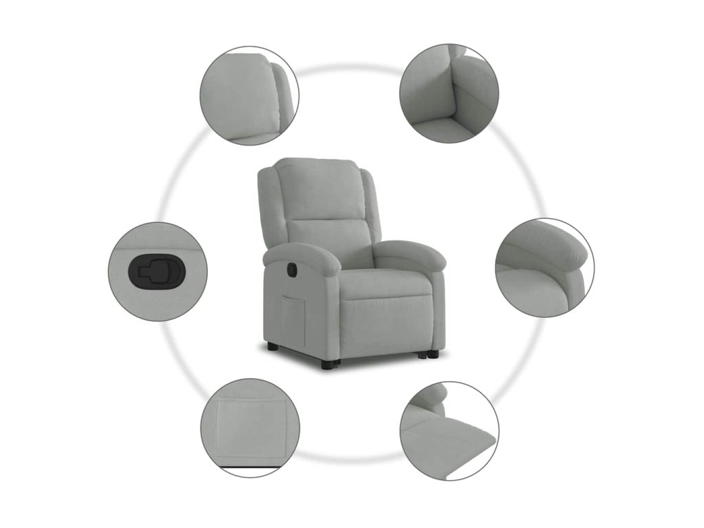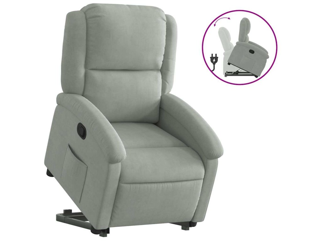 Zvedací polohovací křeslo světle šedé samet 3204300
