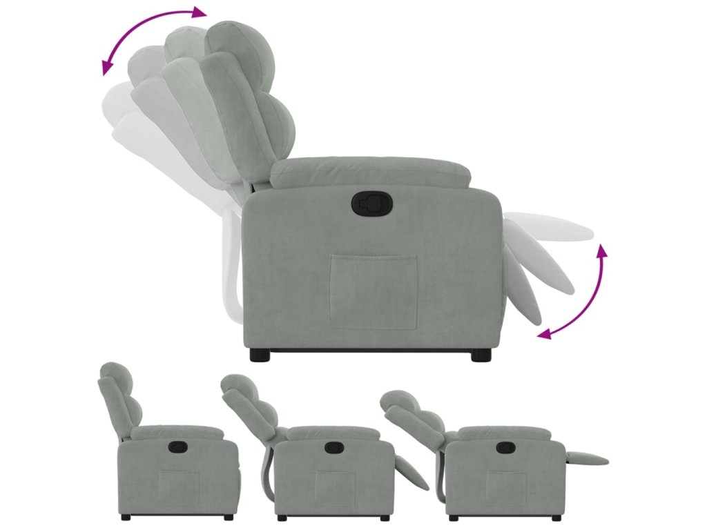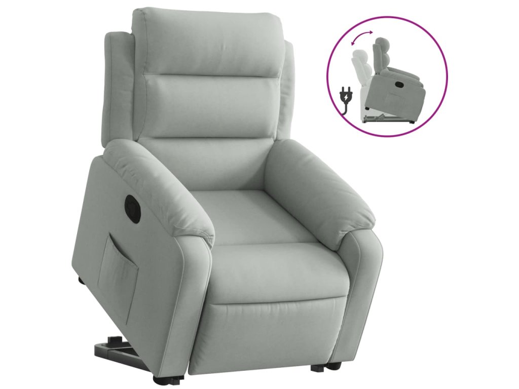 Zvedací polohovací křeslo světle šedé samet 3205092
