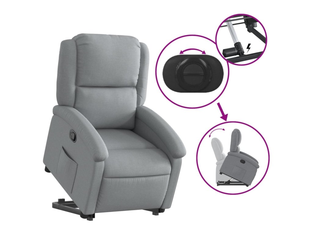Zvedací polohovací křeslo světle šedé textil 3204164