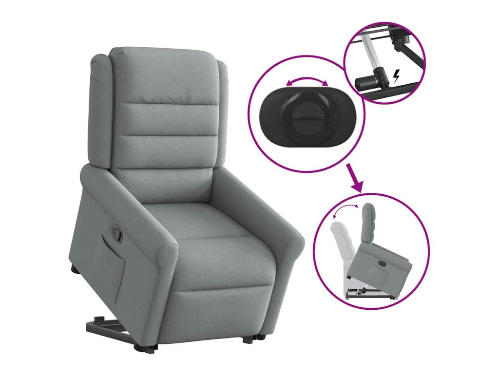 Zvedací polohovací křeslo světle šedé textil 3303314