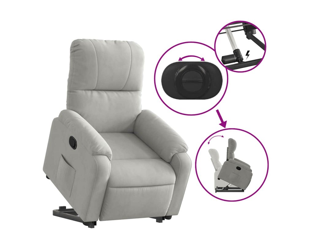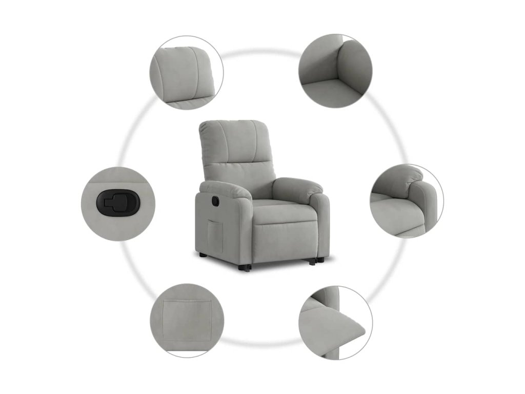 Zvedací polohovací křeslo světle šedé tkanina z mikrovlákna 3204930