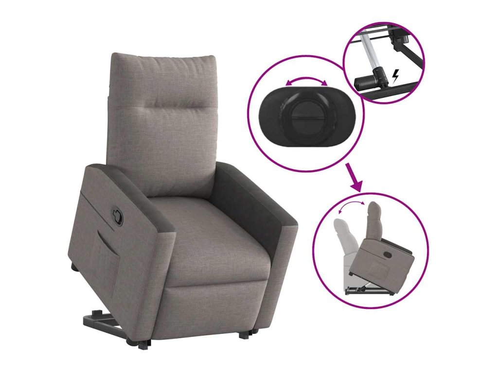 Zvedací polohovací křeslo taupe textil 3324057