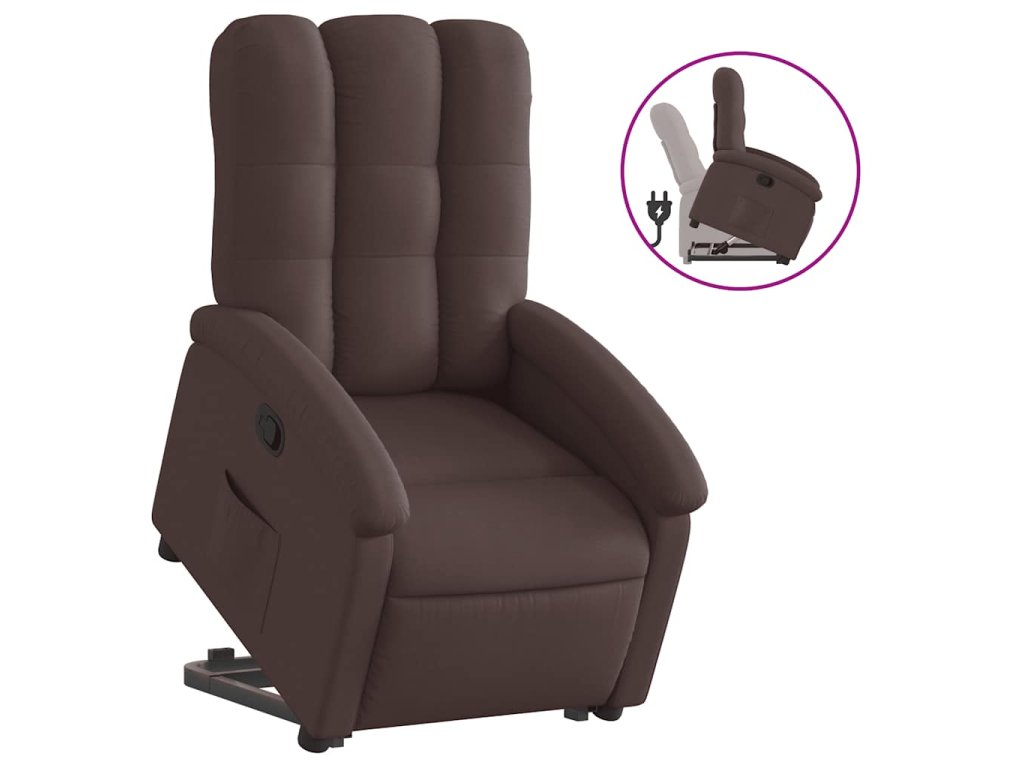 Zvedací polohovací křeslo tmavě hnědé textil 3204097
