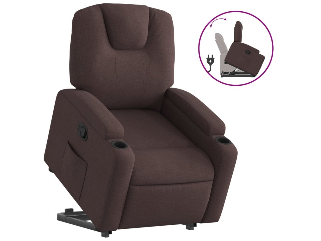 Zvedací polohovací křeslo tmavě hnědé textil 3204373