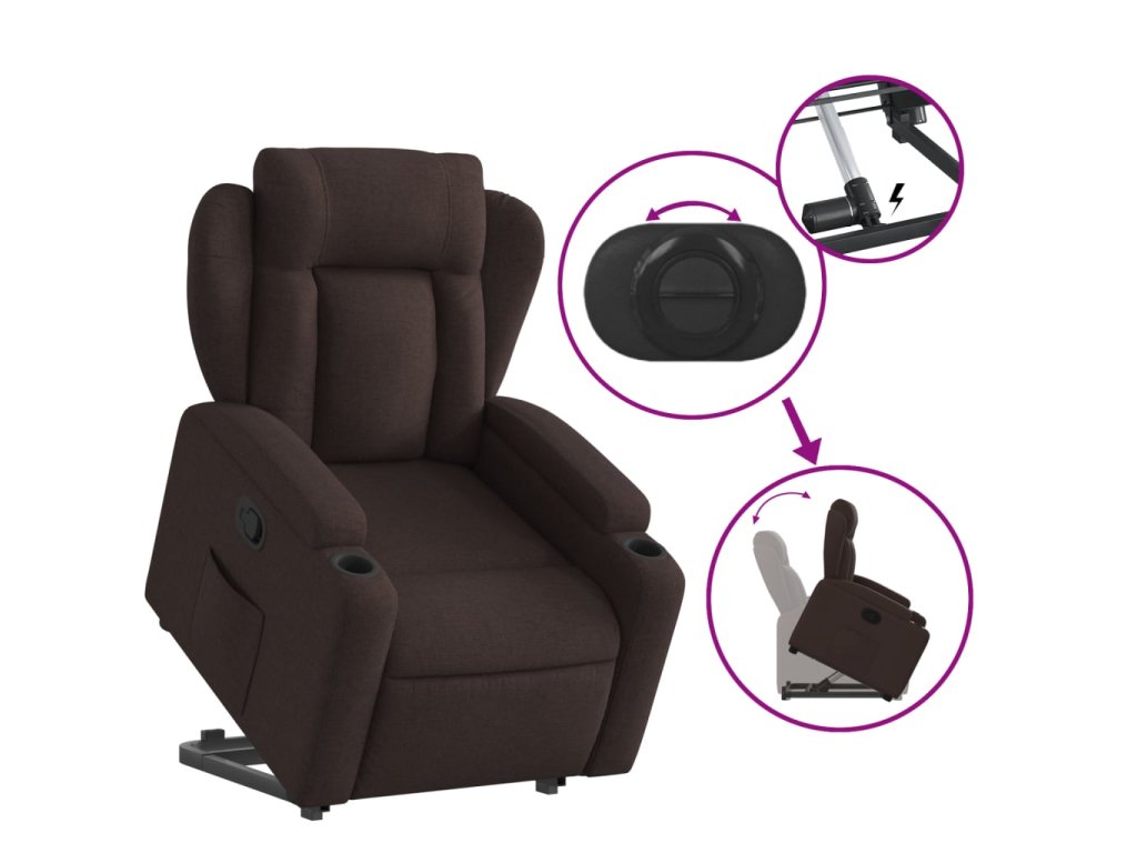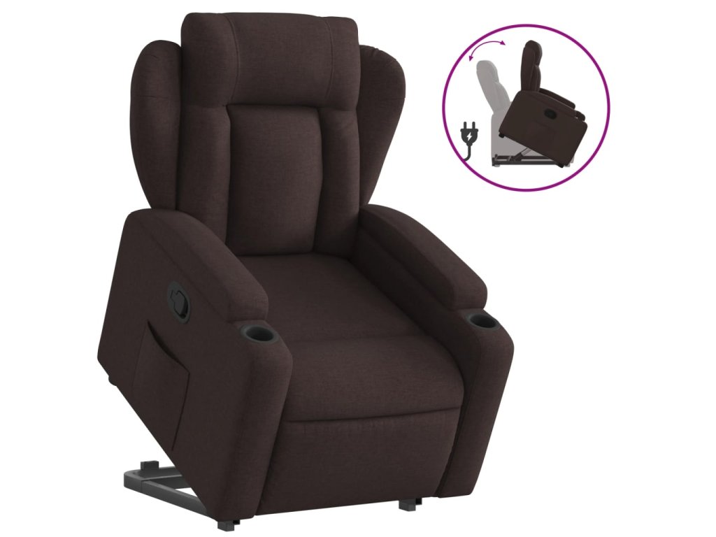 Zvedací polohovací křeslo tmavě hnědé textil 3204487