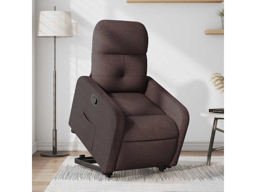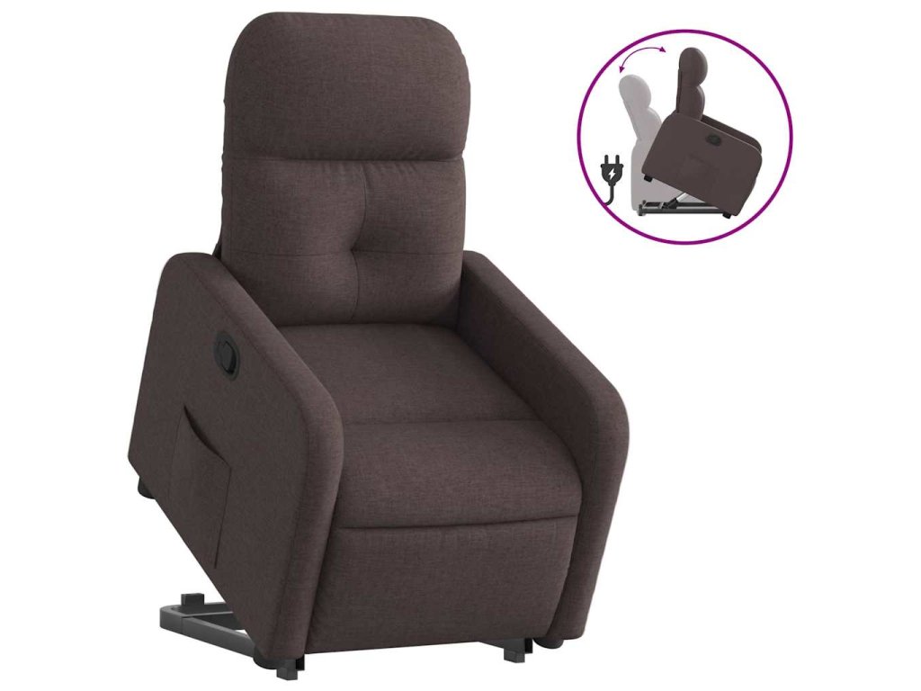 Zvedací polohovací křeslo tmavě hnědé textil 3206800