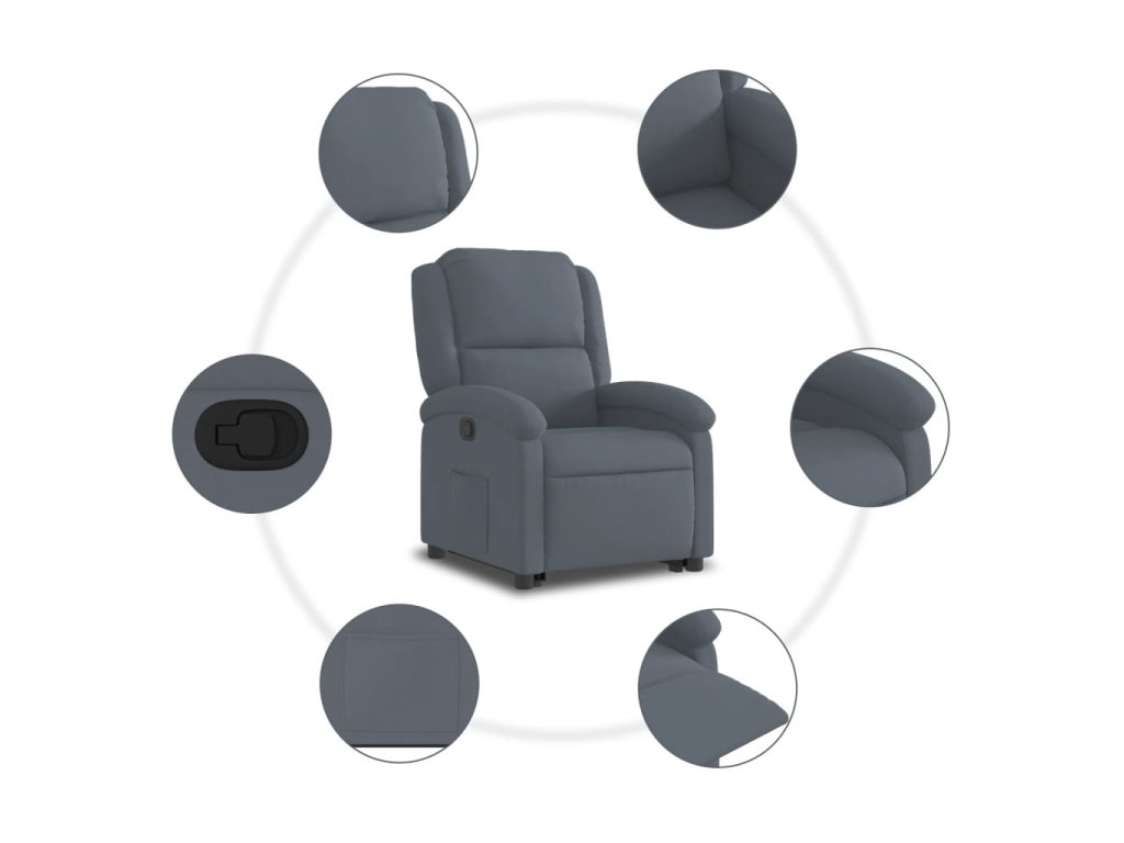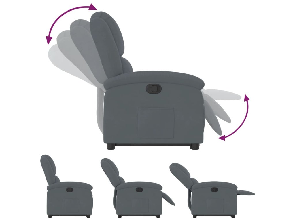 Zvedací polohovací křeslo tmavě šedé samet 3204301