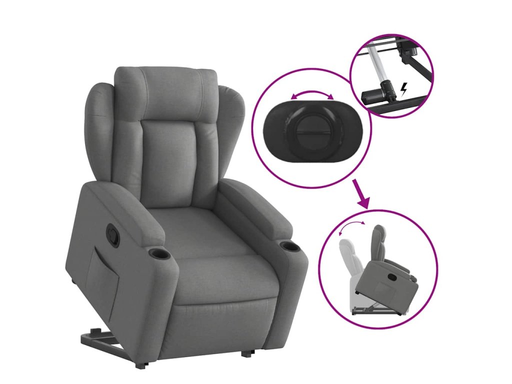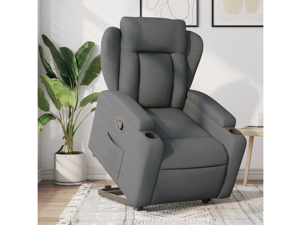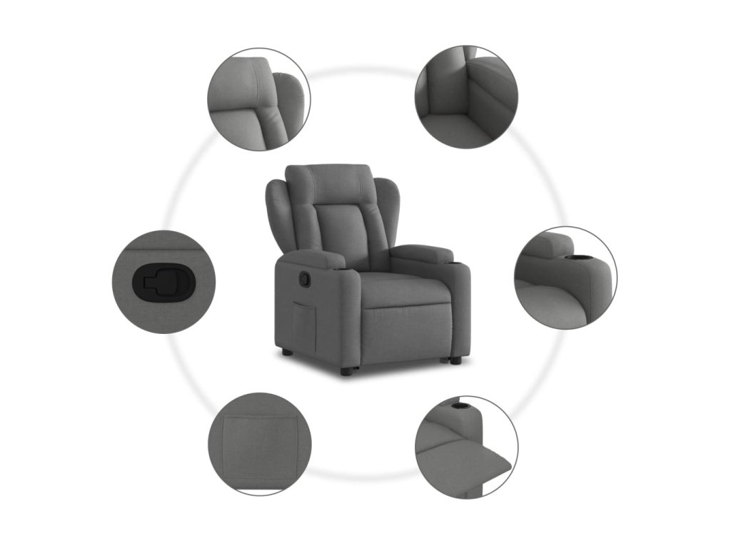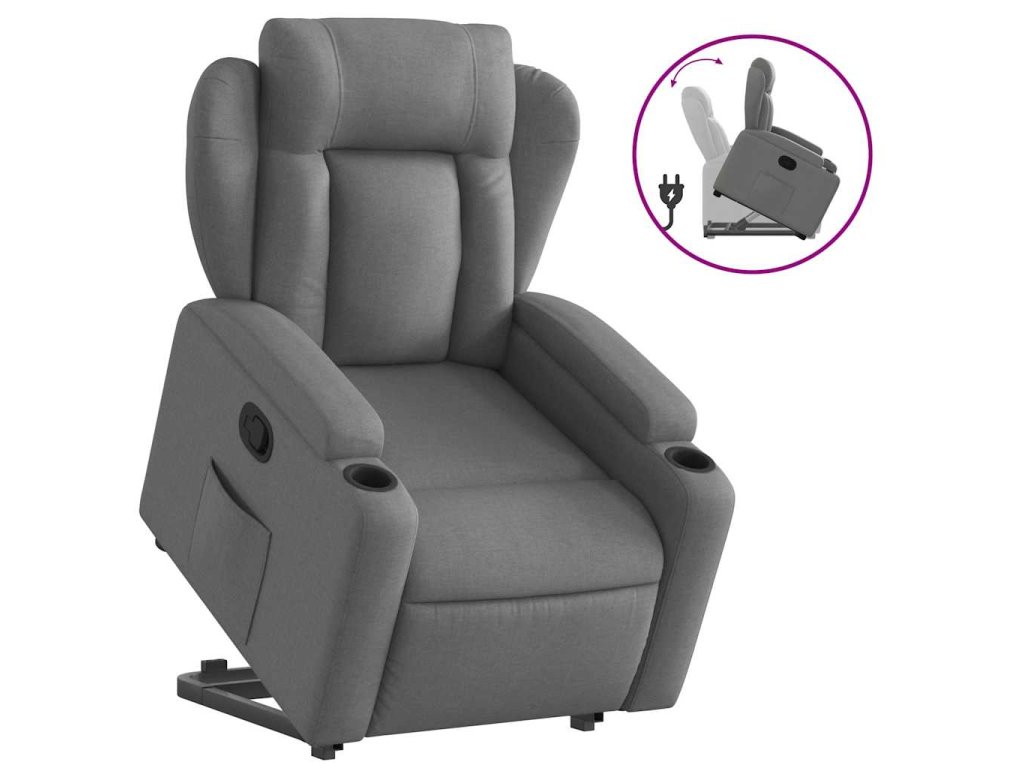 Zvedací polohovací křeslo tmavě šedé textil 3204483