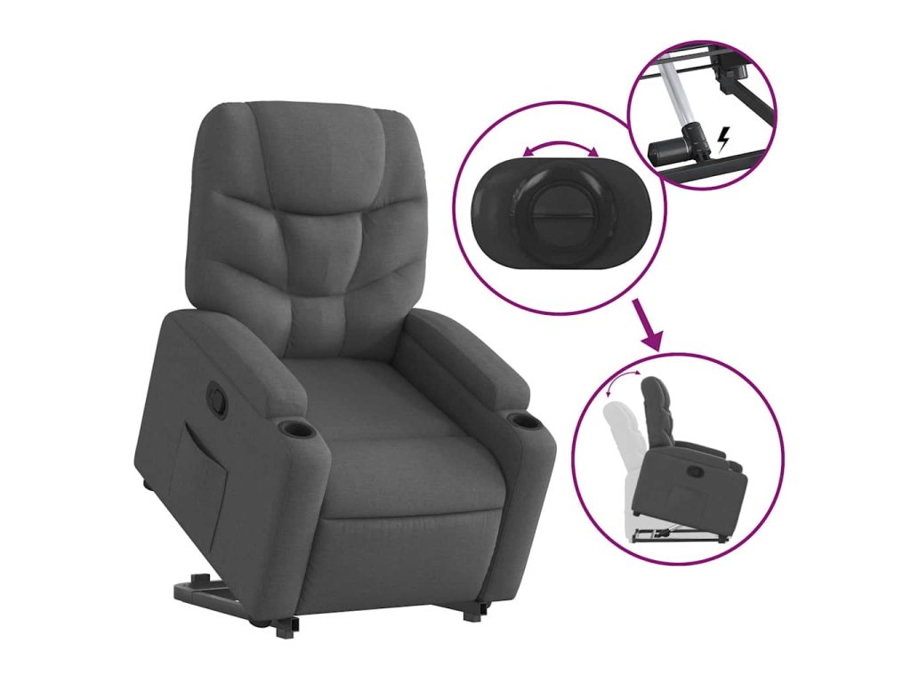 Zvedací polohovací křeslo tmavě šedé textil 3204597
