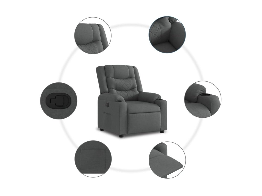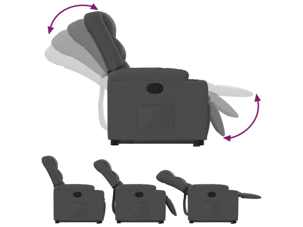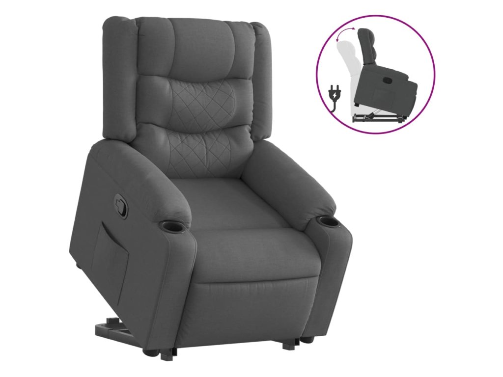 Zvedací polohovací křeslo tmavě šedé textil 3206574