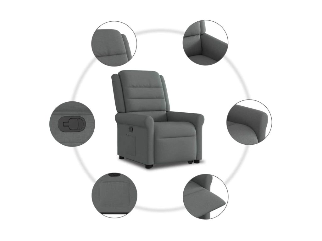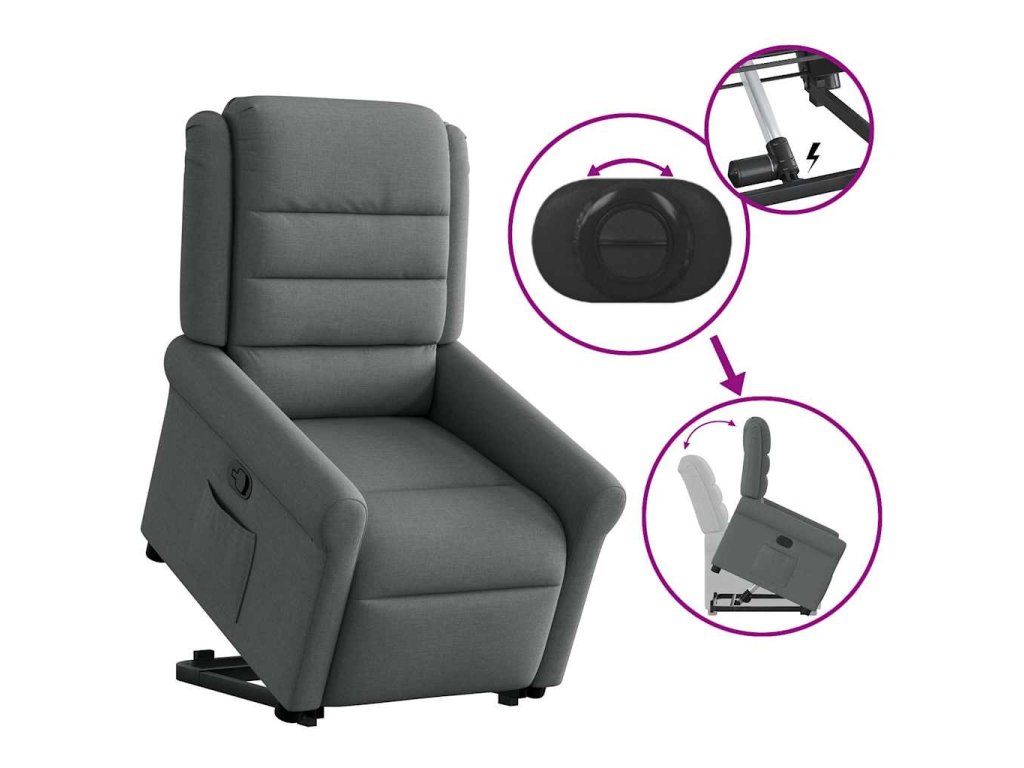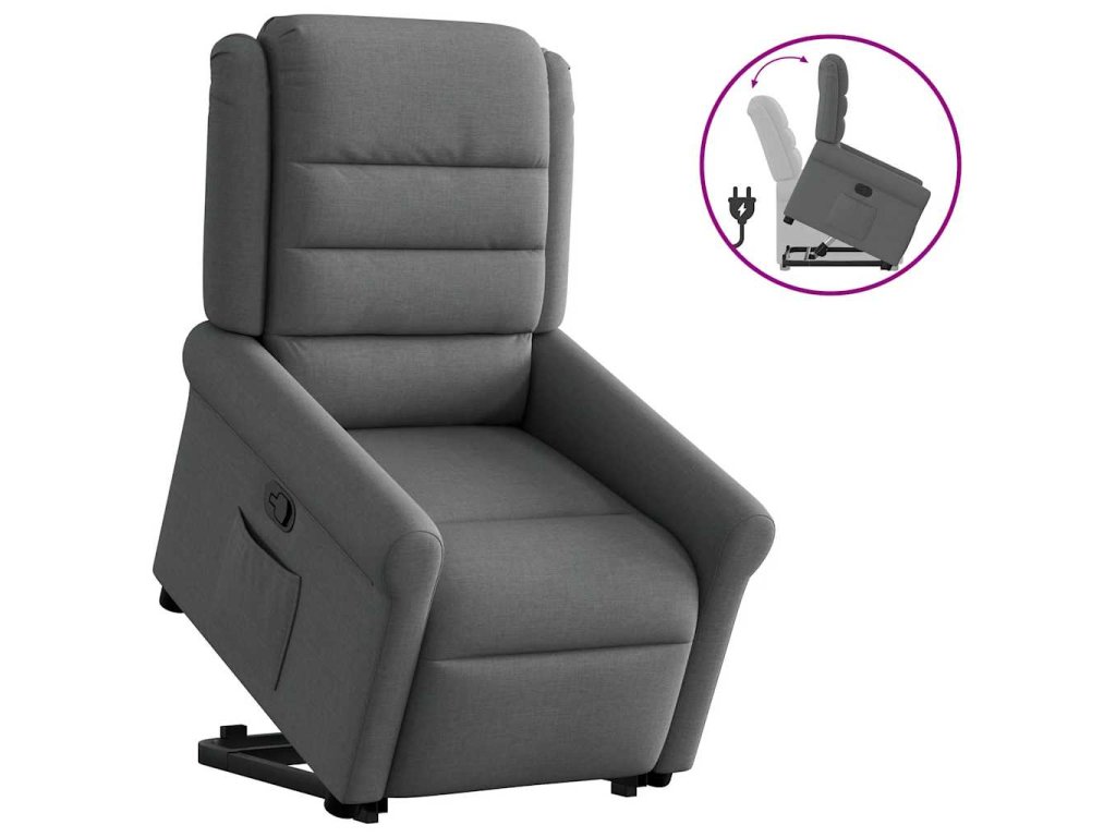Zvedací polohovací křeslo tmavě šedé textil 3303315