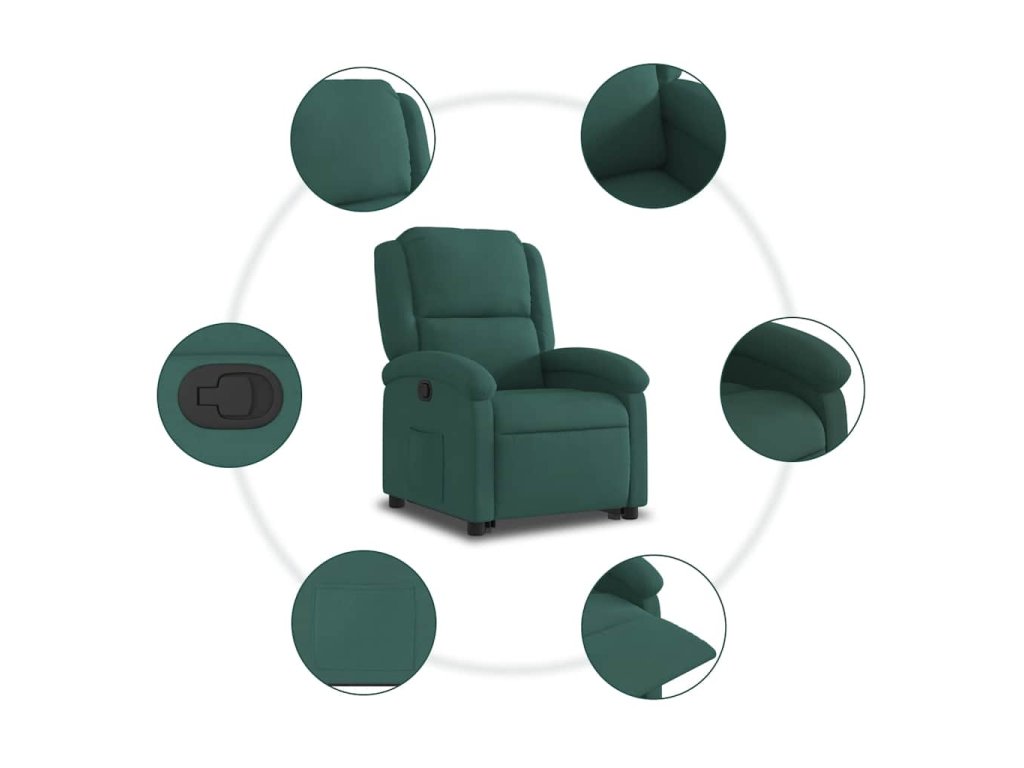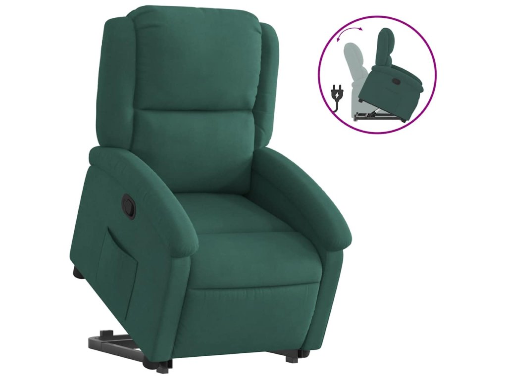 Zvedací polohovací křeslo tmavě zelené samet 3204302