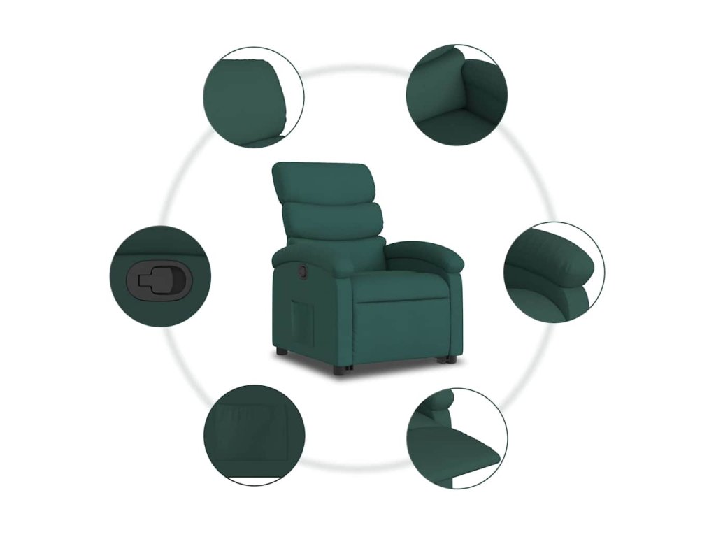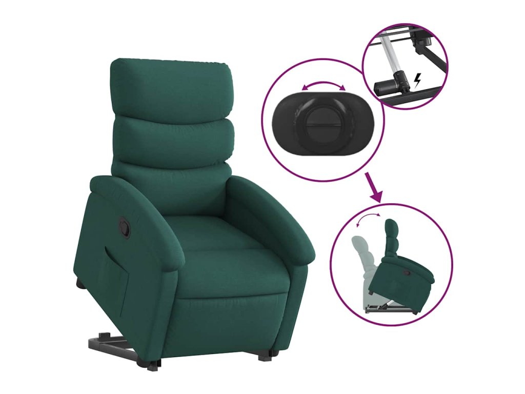 Zvedací polohovací křeslo tmavě zelené textil 3203984