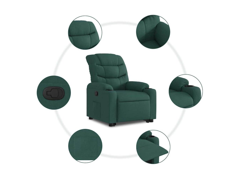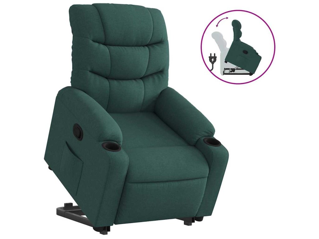 Zvedací polohovací křeslo tmavě zelené textil 3206651