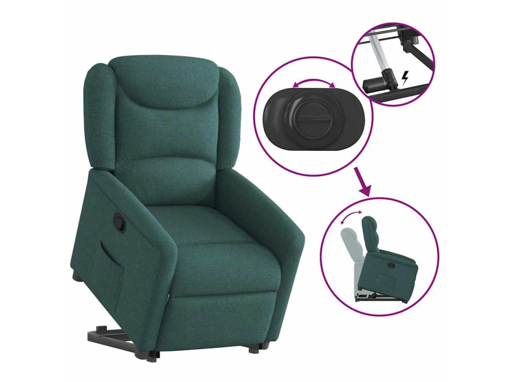 Zvedací polohovací křeslo tmavě zelené textil 3303200