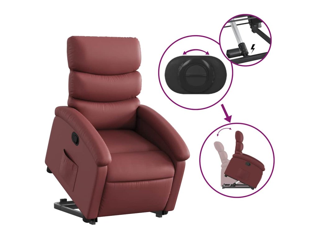 Zvedací polohovací křeslo vínové umělá kůže 3204044