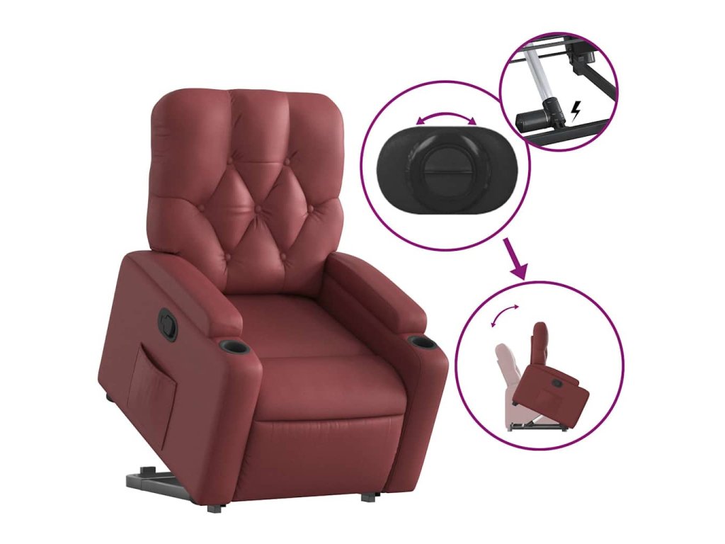 Zvedací polohovací křeslo vínové umělá kůže 3204776